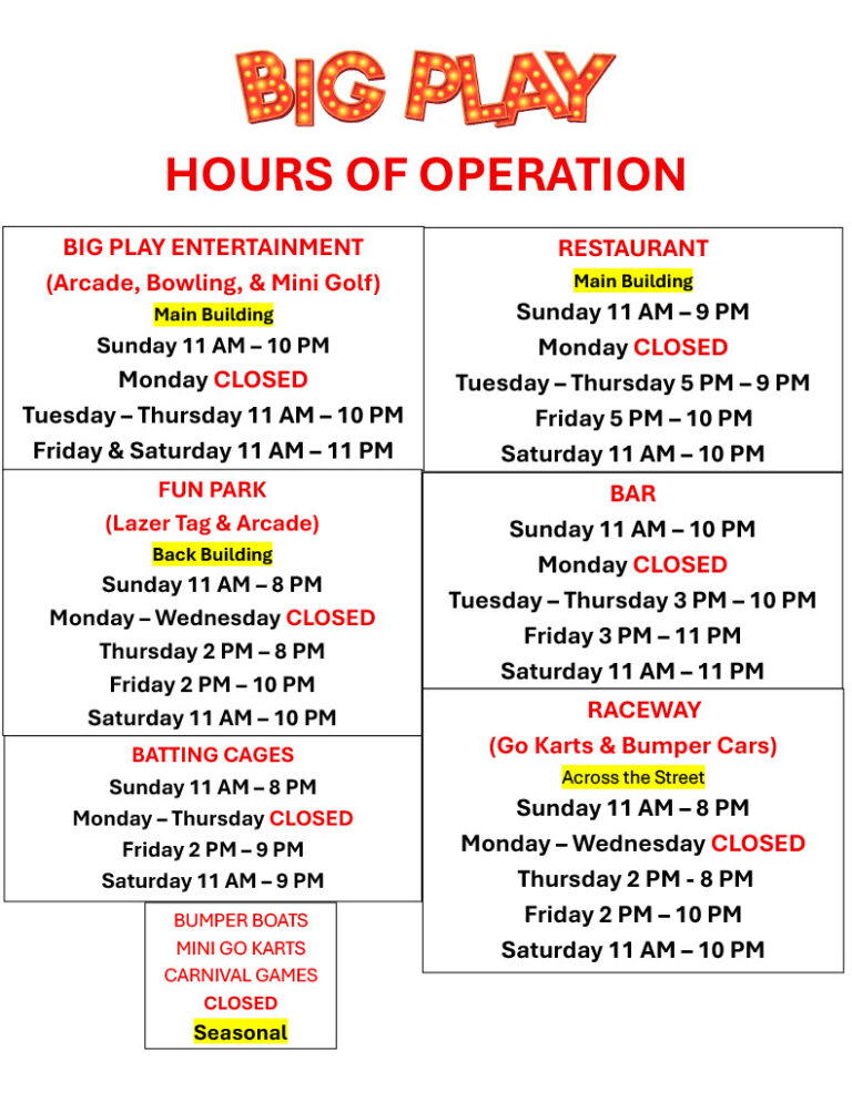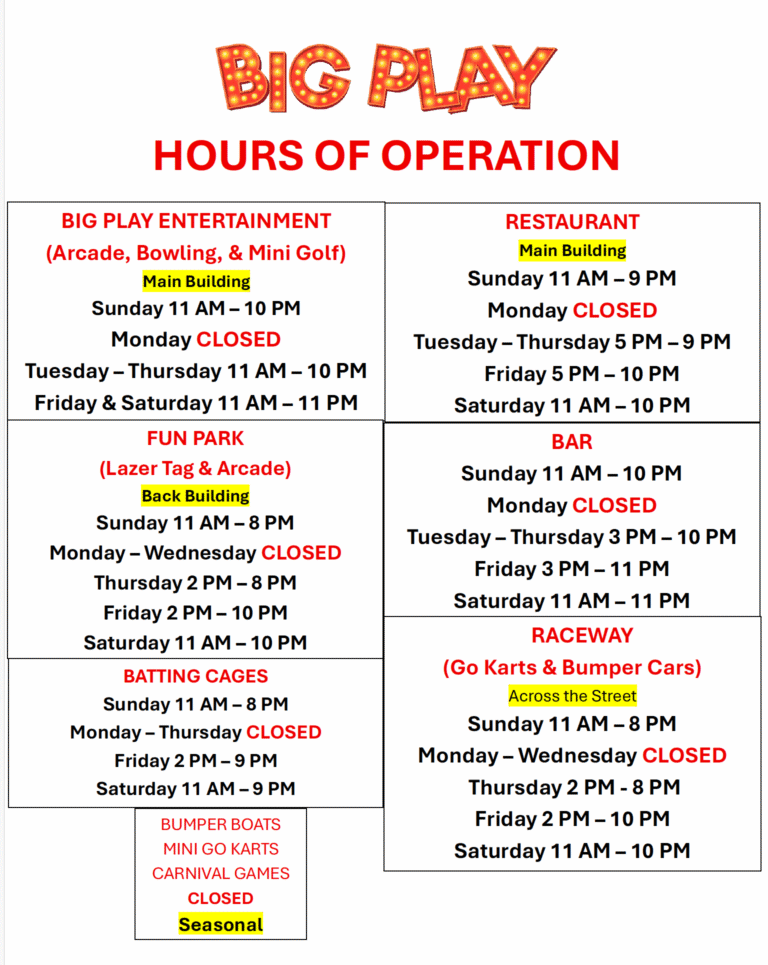 Buckle up and hit the gas at Big Play Biloxi’s Raceway Go-Karts—where speed meets excitement on every turn! Our outdoor track is built for thrills with tight curves, fast straightaways, and high-octane fun for everyone! Whether you're chasing first place or just out for a joyride, the Raceway is your go-to spot for adrenaline-pumping action.